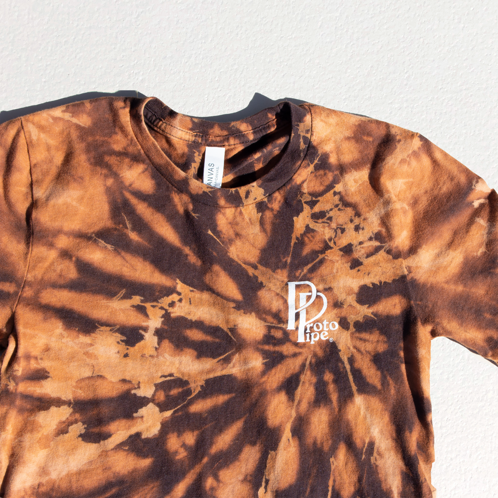 Acid washed Proto Tee, hand dyed and screen printed by the team.